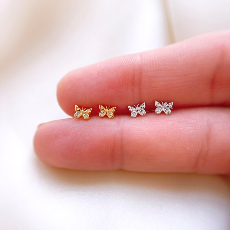 Agrega un toque de dulzura a tu look con estos delicados pendientes en forma de mariposa.